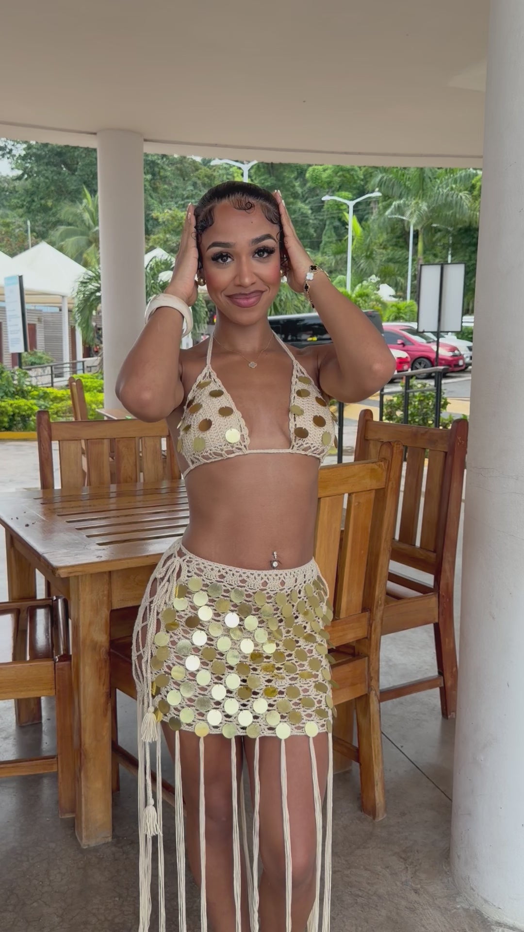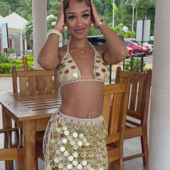 Gold Sequin 3 Piece Crochet Set